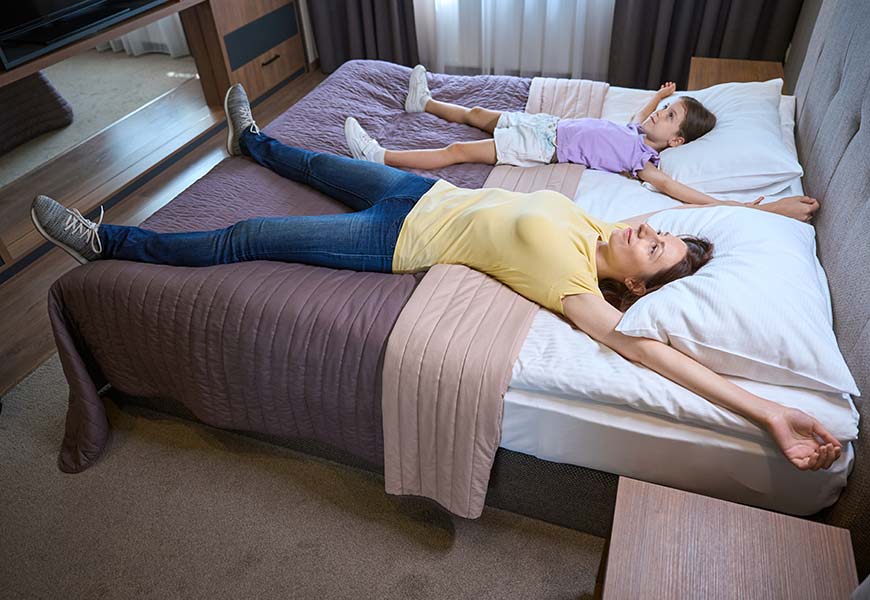 La thermorégulation doit être soignée. Avec trois corps sur le lit, la chaleur monte vite. Les ressorts ensachés ventilent naturellement. Les mousses doivent être aérées ou associées à des couches respirantes. Le latex alvéolé garde une bonne circulation d’air. Si vous transpirez facilement, privilégiez des housses en fibres naturelles ou techniques respirantes.